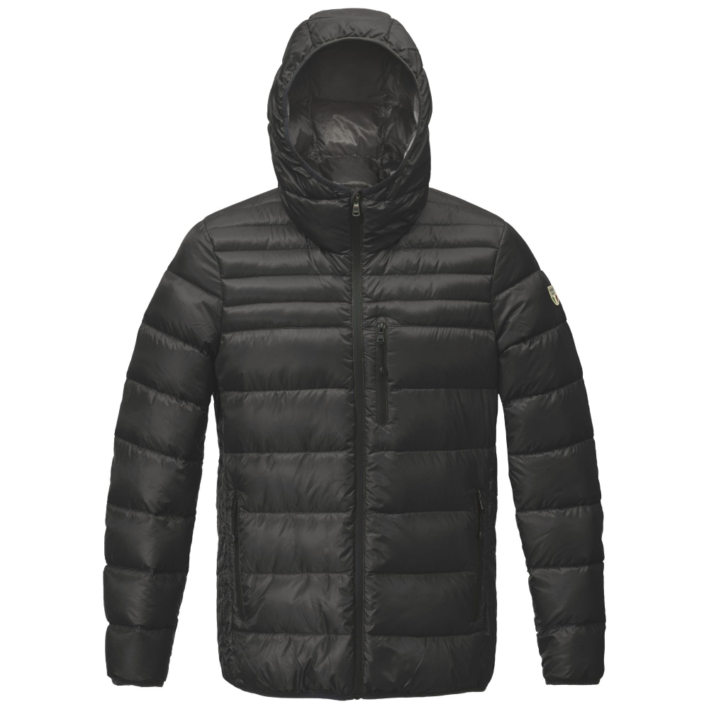 SPECIAL FEATURES: fi xed hood with elastic binding - front opening with zip - 1 chest pocket with zip - 2 hand pocket with zip - cuff and bottom with elastic binding - 1 inner left chest pocket.