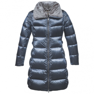 Blending shiny metallic colours with functional and protective features of outdoor wear, the 76 Satin Evo parka is meant for active women who looks for a classy, yet easy-going jacket to move into the city with ease. The outer shell of this garment is made out of a flexible and completely waterproof nylon fabric. The perfect mix of warmth and insulation is provided by a soft real down padding. This version features a cozy and detachable eco-fur inside collar.