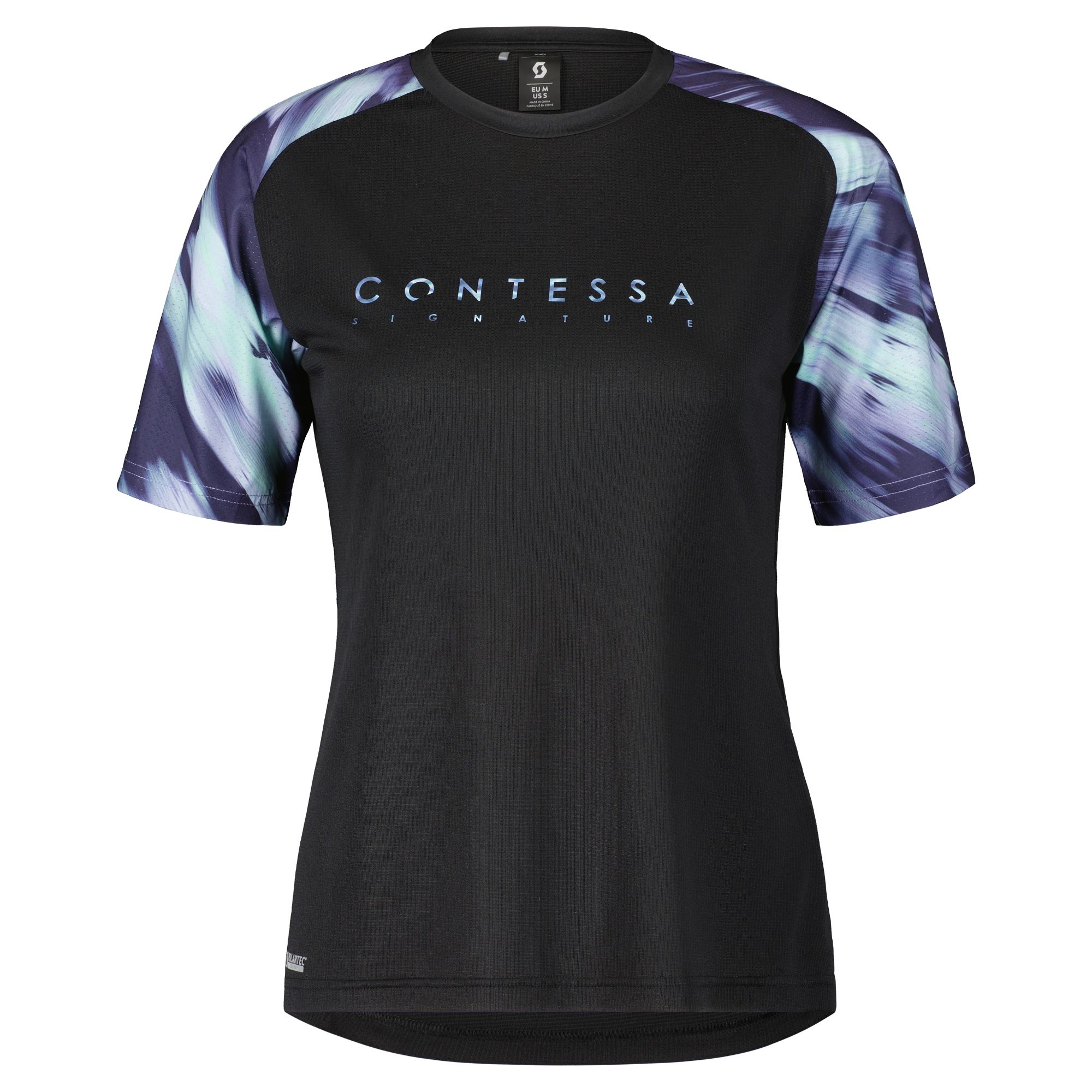 Strong, feminine and fast, our Contessa Signature Collection was hand crafted for women who are serious about the way their bikes and equipment look and perform. The SCOTT Trail Contessa signature short sleeve women's shirt features Polartec Delta™ technology, which makes the best use of the body's natural cooling process. The dyed polyester material gives it a sleek look and the brushed holographic logos add a premium finish. The cut is adapted to the riding position for better performance on the bike.