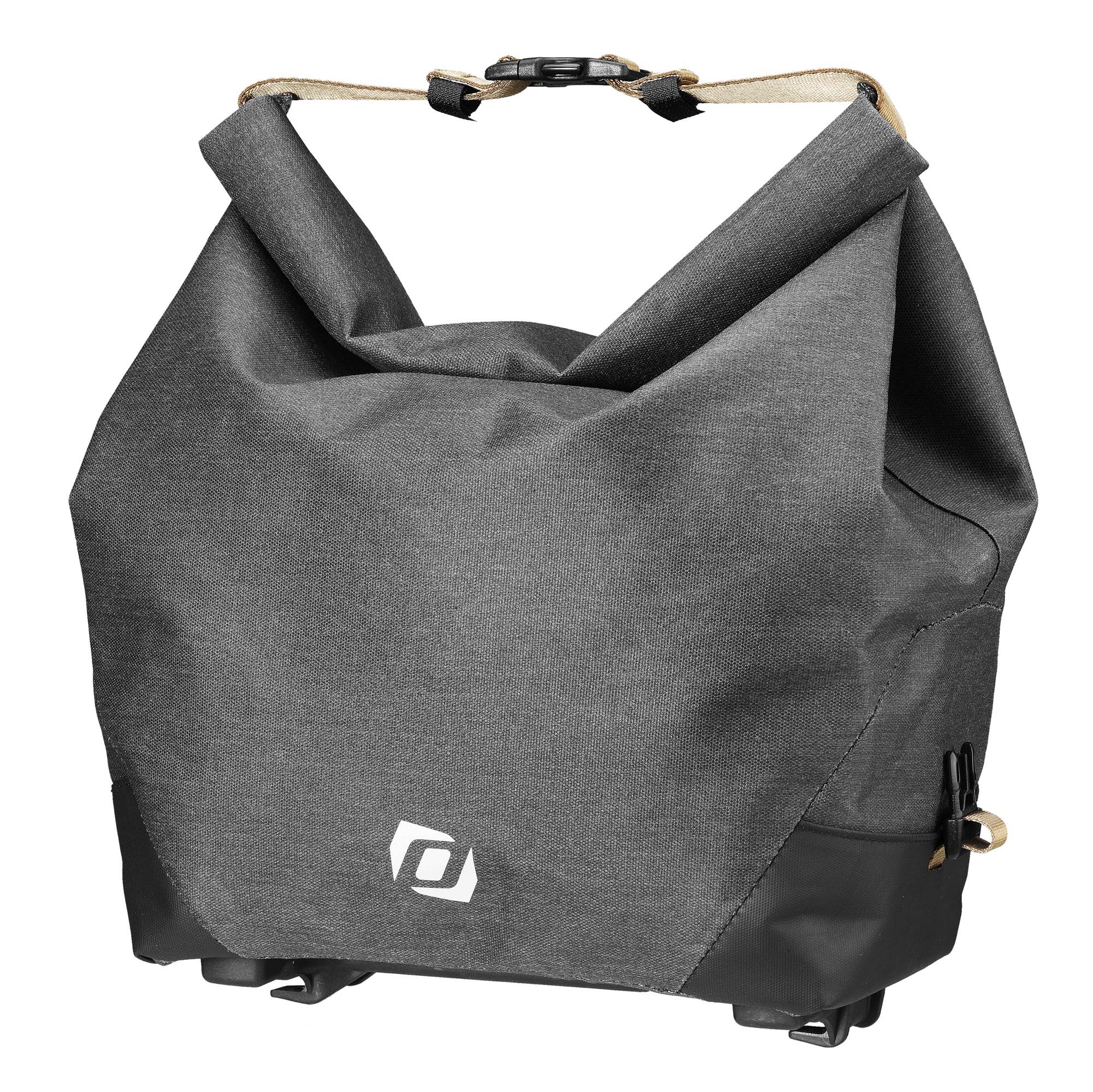 Waterproof trunk bag with roll-top to prevent water ingress and 2 closure options (top or side). This model features the updated Racktime Snap-it 2.0 adapter for secure attachment. Reflective safety elements.